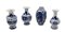 Gruppo di quattro vasi in porcellana decorati in blu con fiori, paesaggi e deco