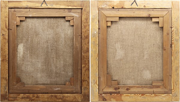 Scuola del secolo XVIII Coppia di dipinti ad olio su tela raffiguranti "Ritrat