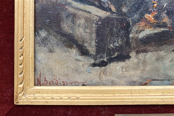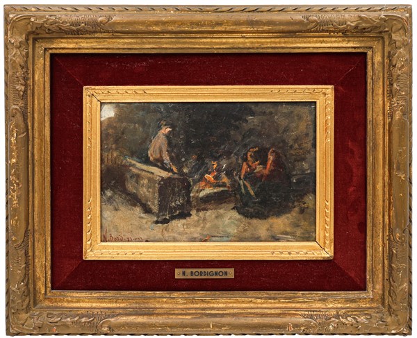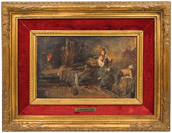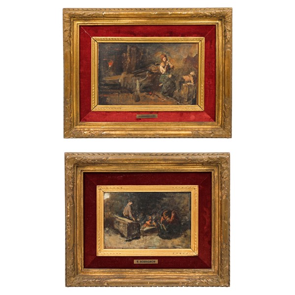 Noè Raimondo Bordignon Coppia di bozzetti ad olio per "Scene di interno" su dive
