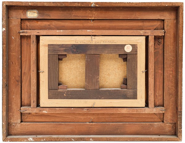 Coppia di bozzetti ad olio per "Scene di interno" su diversi supporti (cm max 20x29)