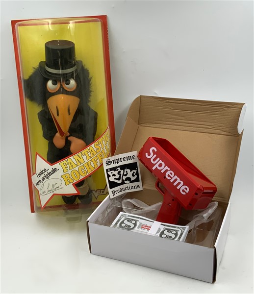 Lotto composto da Supreme "Money Gun Cash Cannon" e pupazzo "Fantastico Rockfel