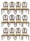 Gruppo di dodici sedie in noce con schienale a medaglione centrato da cartella
