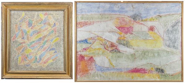 Due tecniche miste su tela di soggetto astratto e di misure diverse (misura max cm 75x100), firmati