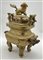 Incensiere biansato in metallo dorato con coperchio e presa in forma di cane di