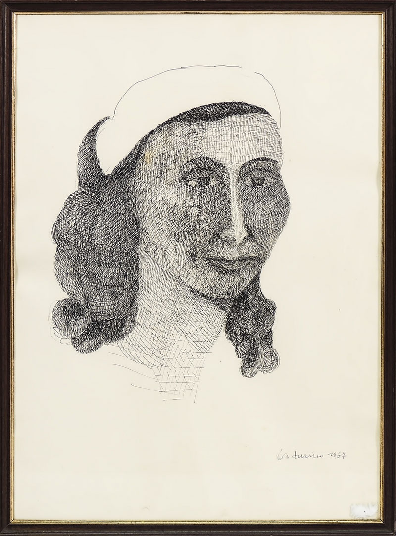 VENTURINO VENTURI (1918-2002) Ritratto femminile - Female Portrait china su carta - indian ink on paper, firmato e datato 1967, in cornice cm 70x50 Provenienza: Galleria Michelucci, Firenze