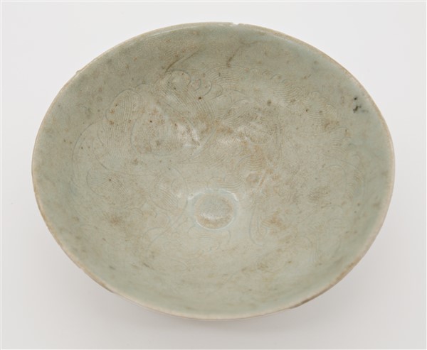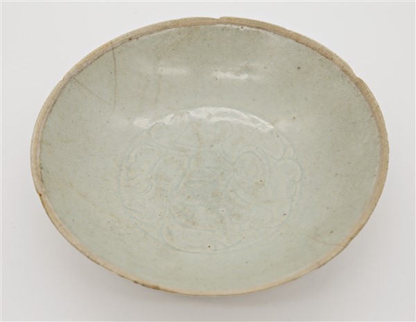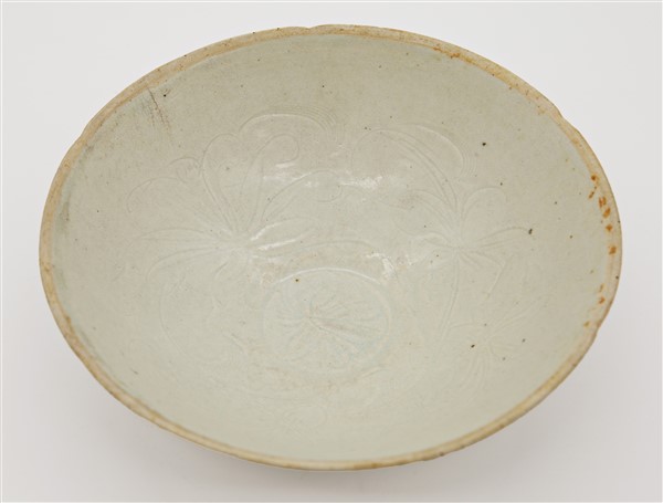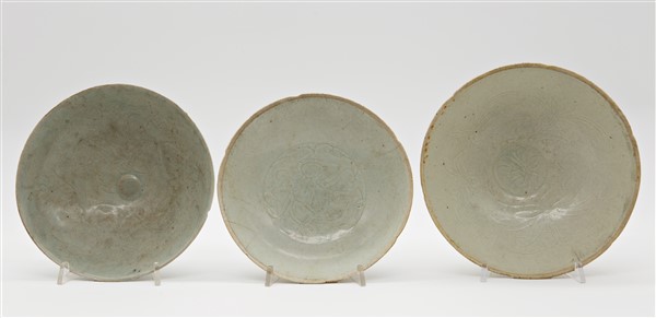 Due ciotole e un piattino in porcellana Qingbai decorate con motivi floreali