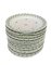 Manifattura di Vienna, prima metà del secolo XIX. Parte di servizio di da tavola in porcellana dipinta in verde a foglie, composto da cinquanta piatti piani, trentaquattro piatti fondi, coppia di grandi zuppiere biansate con coperchio e présentoir, coppia di zuppiere globulari biansate con coperchio, coppia di legumiere biansate con coperchio, nove diversi vassoi ovali, quattro diversi vassoi quadrangolari, cinque piatti con bordo traforato, dodici diversi piatti circolari da portata, due salsiere con coperchio, una mostardiera con coperchio, un mestolino, cinque piattini, coppia di alzate a coppa traforata con base a plinto, quattro cremiere con coperchio, insalatiera e altri coperchi piccoli. (difetti, rotture e mancanze)