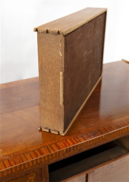 Credenza a due ante e tre cassetti sottopiano impiallacciata in mogano ed intar