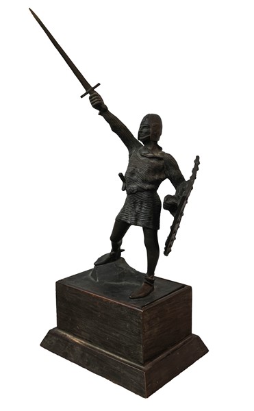 Ignoto, Alberto da Giussano, bronzo su base a plinto in legno. (h tot cm 57,5) (difetti)