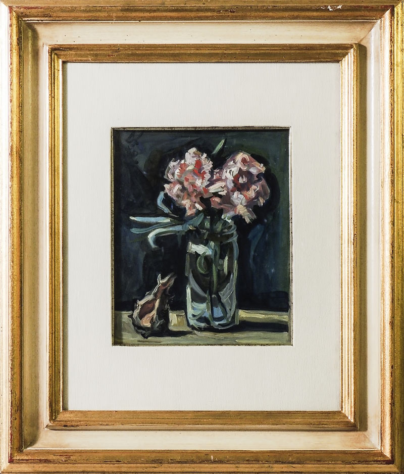 DILVO LOTTI (1914-2009) Natura morta con fiori e conchiglia - Still Life with Flowers and Shell olio su tavoletta - oil on panel, siglato, al verso siglato e datato'78, in cornice cm 30x27
