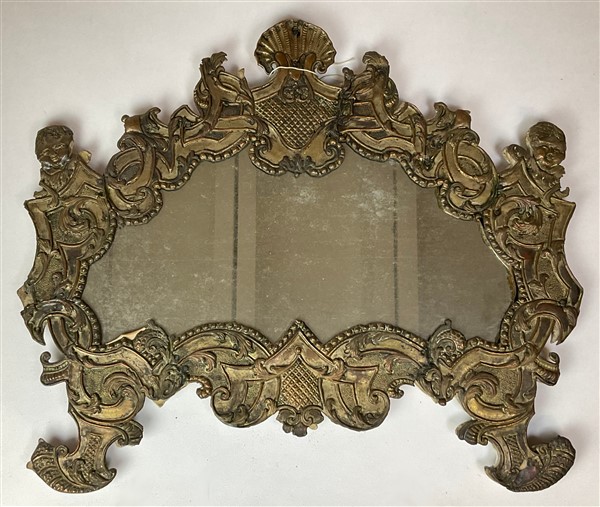 Due cartagloria in rame sbalzato decorato a volute ed elementi stilizzati. Fine secolo XVIII (cm max 63x55) (difetti)