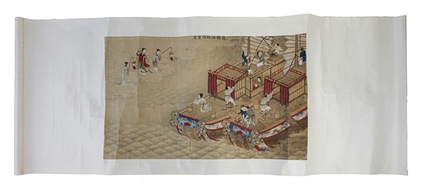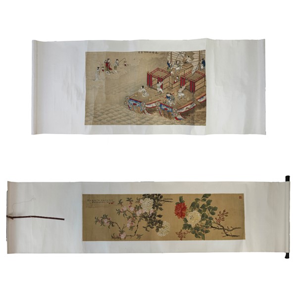 Due scroll, inchiostro su seta, uno raffigurante fiori, l'altro raffigurante barche