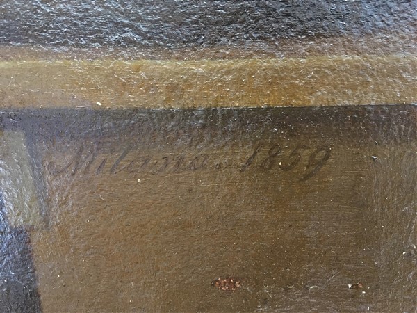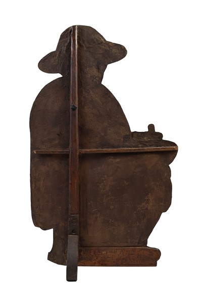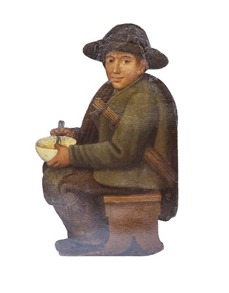 Arte del secolo XIX. Silhouette in cartone sagomato e dipinto in policromia, raffigurante giovane con cappello e ciotola. Locato e datato "Milano 1859" al centro. (cm 77,5x47) (difetti e restauri)