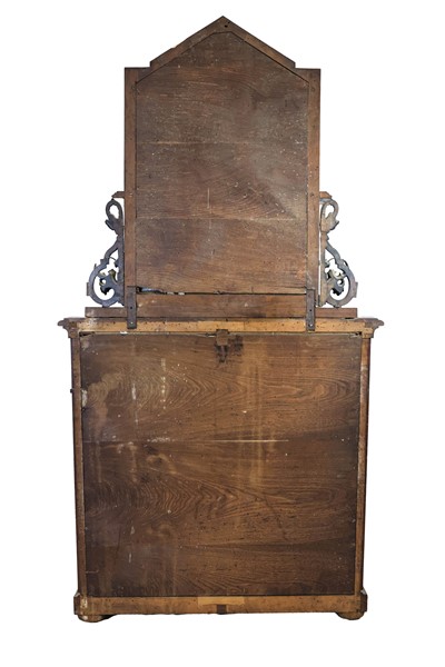Vetrina lastronata in noce con alzata a specchio e doppia mensola, parte inferi