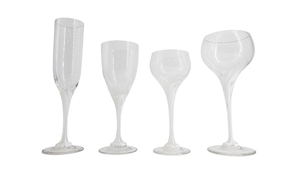 Rosenthal - Studio Line. Modello Snow Flower, servizio di bicchieri in vetro incolore e lattimo composto da otto calici da acqua, otto da vino, otto flute e otto più piccoli. (lievi difetti)