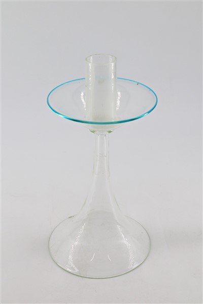 Lotto composto da un portacandela in vetro soffiato trasparente incolore con or