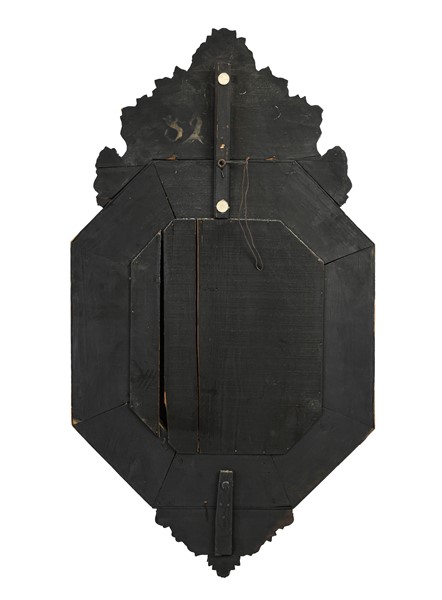 Specchiera di forma ottagonale a doppio ordine, bordure, cimasa e grembiale riv