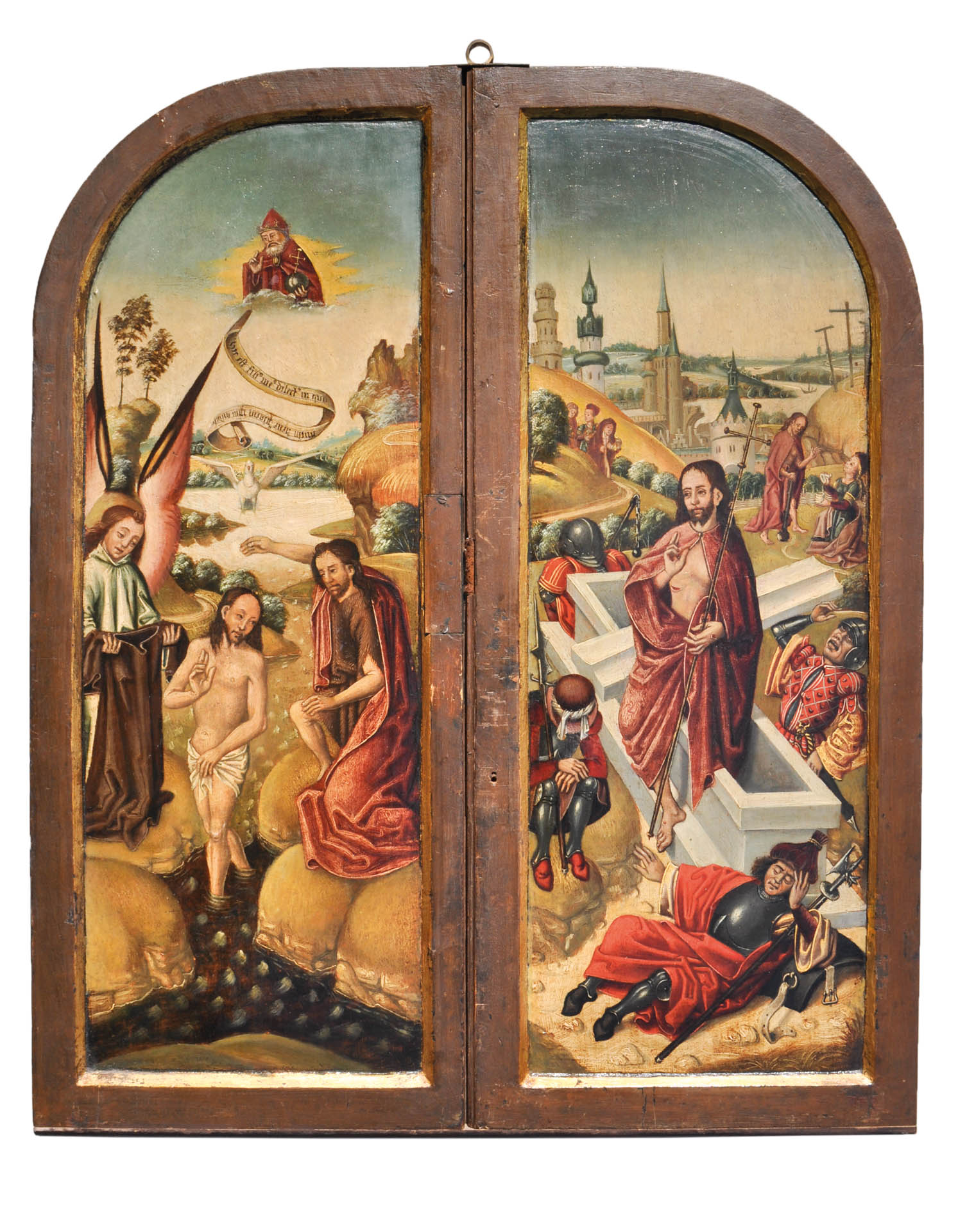 Deutsch, um 1480/Germania, 1480 ca. Due pannelli dipinti su entrambi i lati...