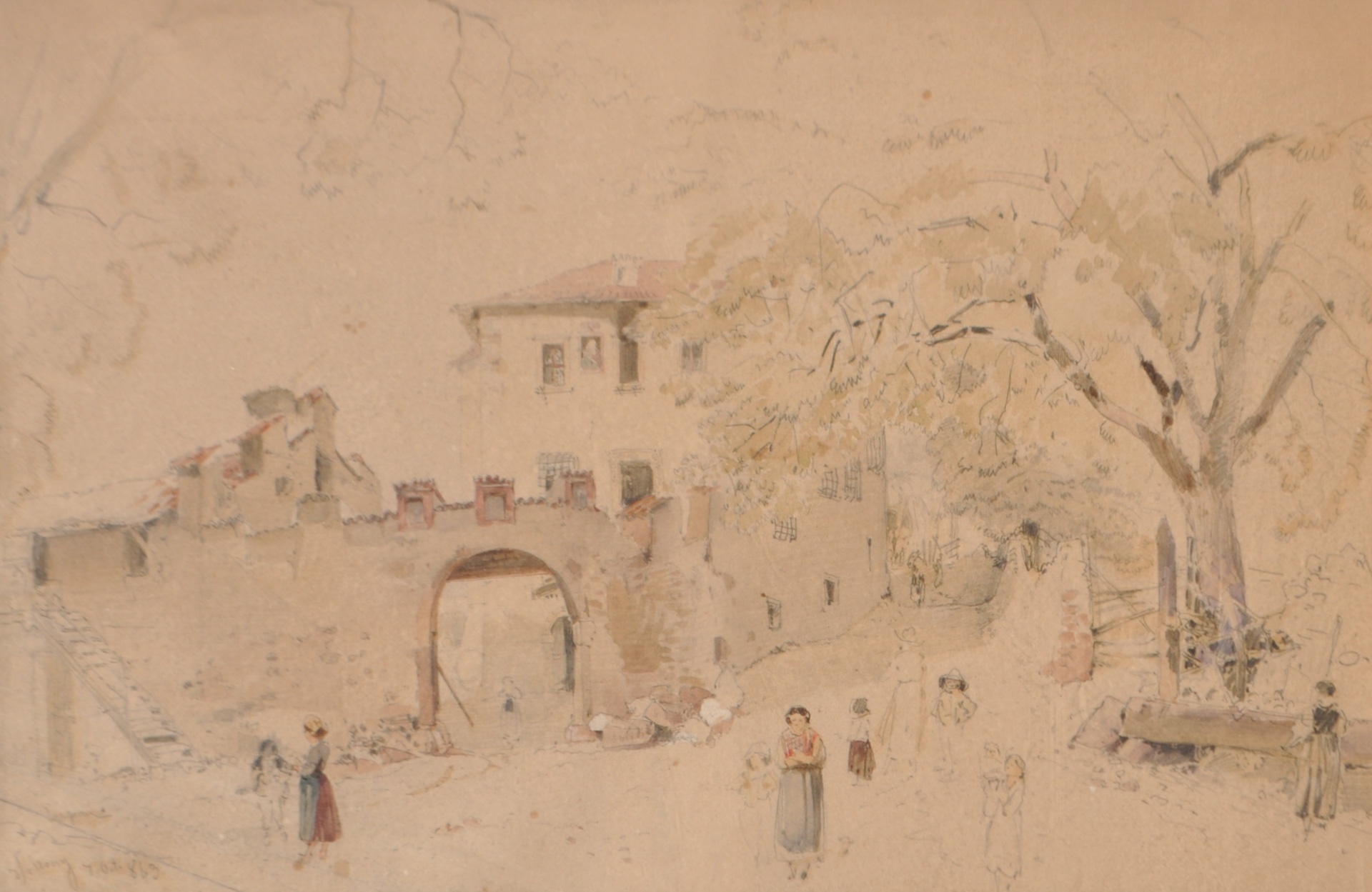 Joseph Selleny (Meidling 1824 - Inzersdorf 1875) Dimora ad Appiano, 1863;Matita acquerellata, 25,5 x 39 cm, in cornie