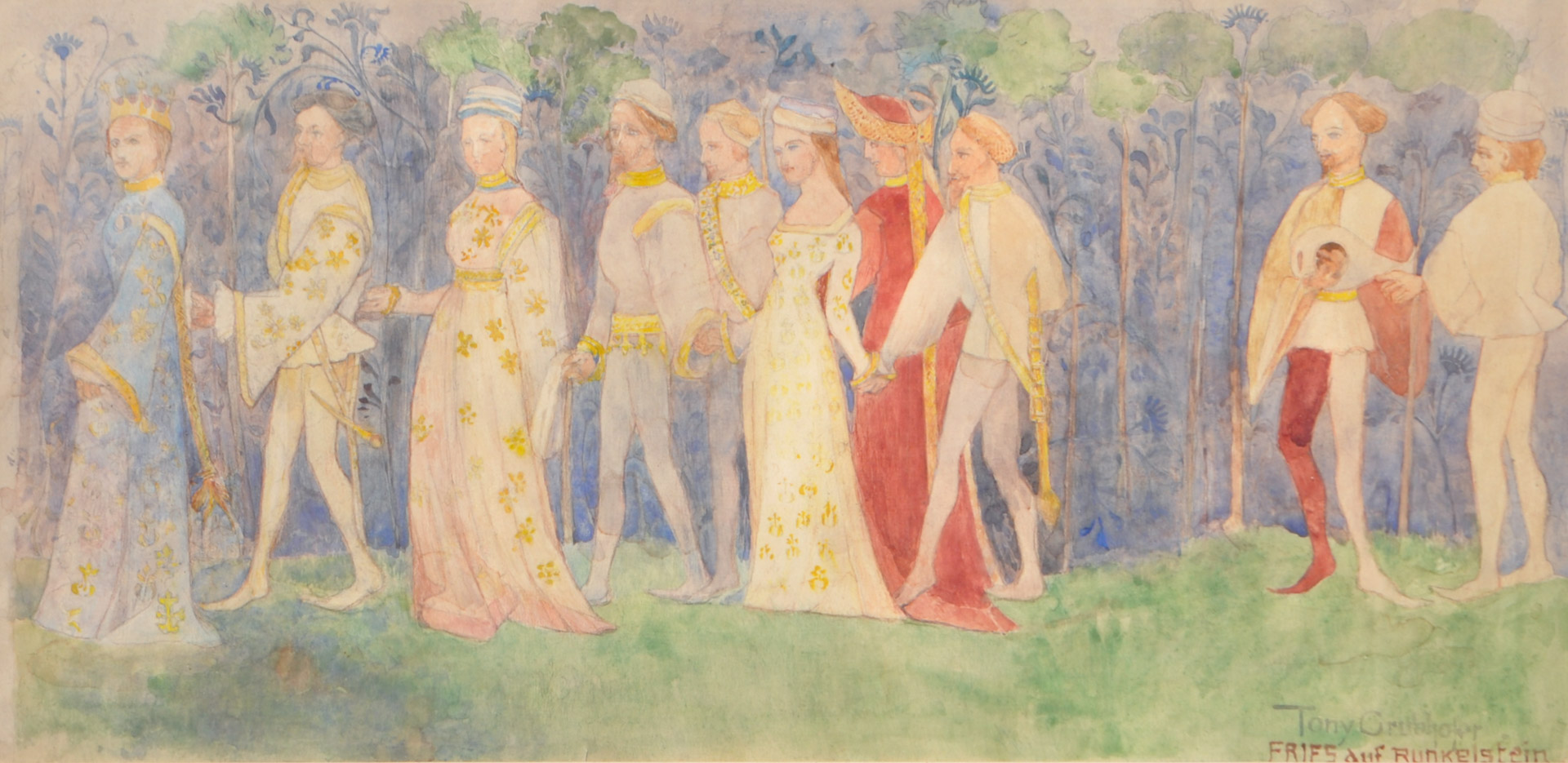 Tony Grubhofer (Innsbruck 1854 - 1933) Fregio nel Castel Roncolo, 1910...