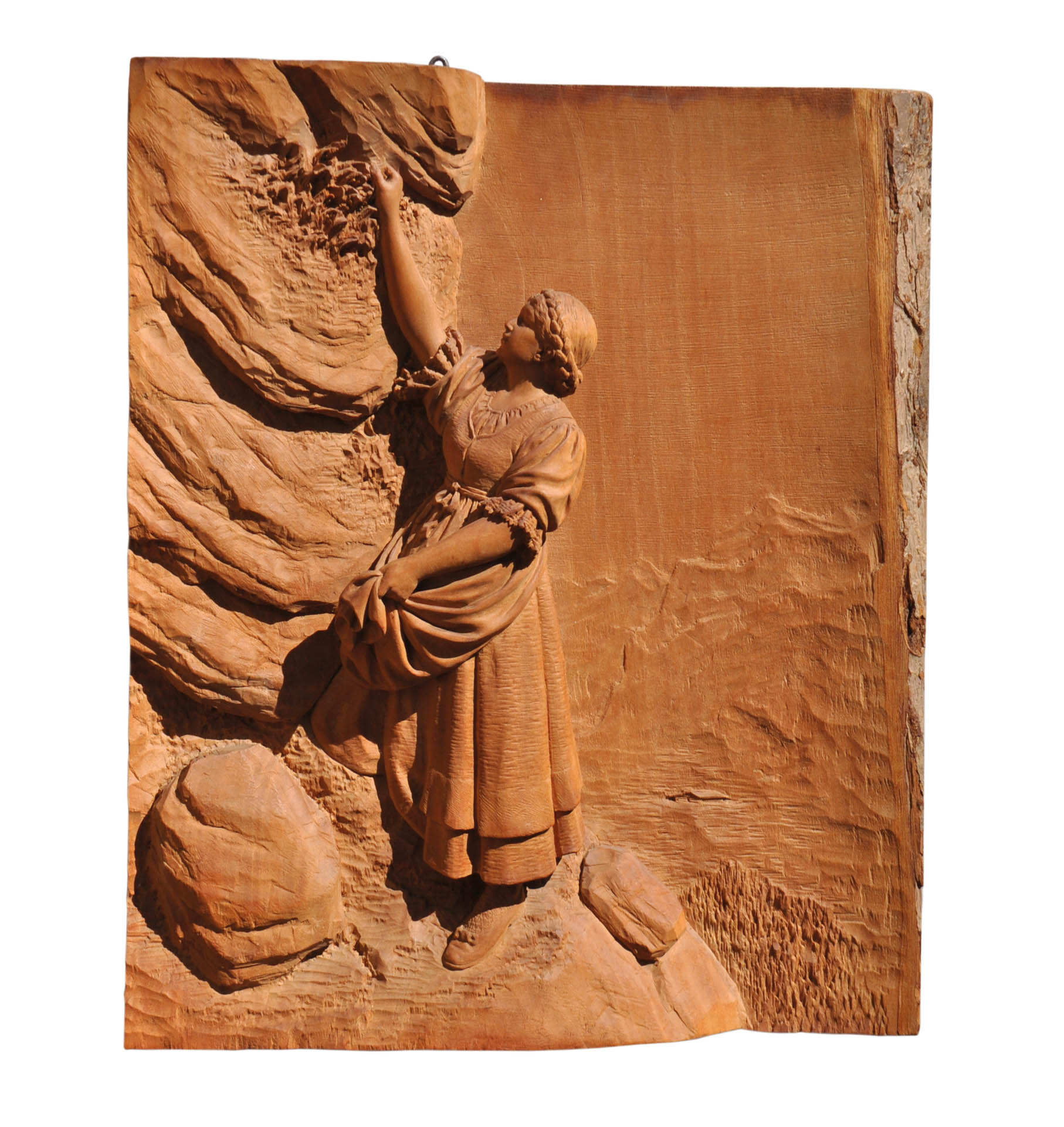 Hermann Steiner (Meran/Merano 1878 - 1963) Ragazza che raccoglie piante;Rilievo in legno, 28,8 x 24,5 cm