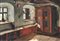 Thomas Walch (Imst 1867 - 1943) Stube tirolese con gatto nero; Olio su tela,...