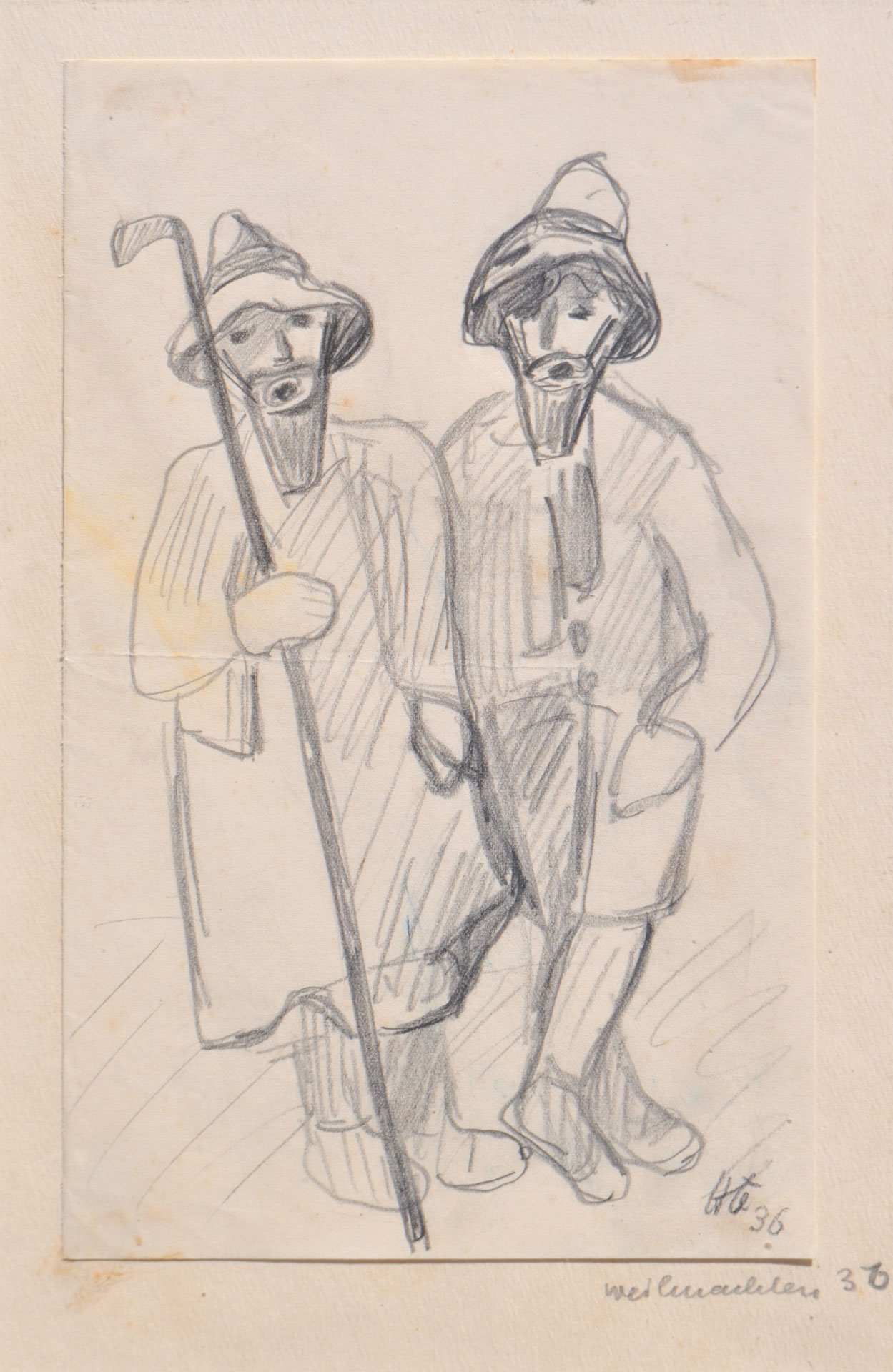 Hilde Goldschmidt (Leipzig/Lipsia 1897 - Kitzbühel 1980) Due pastori, 1936;Matita, 23 x 14 cm