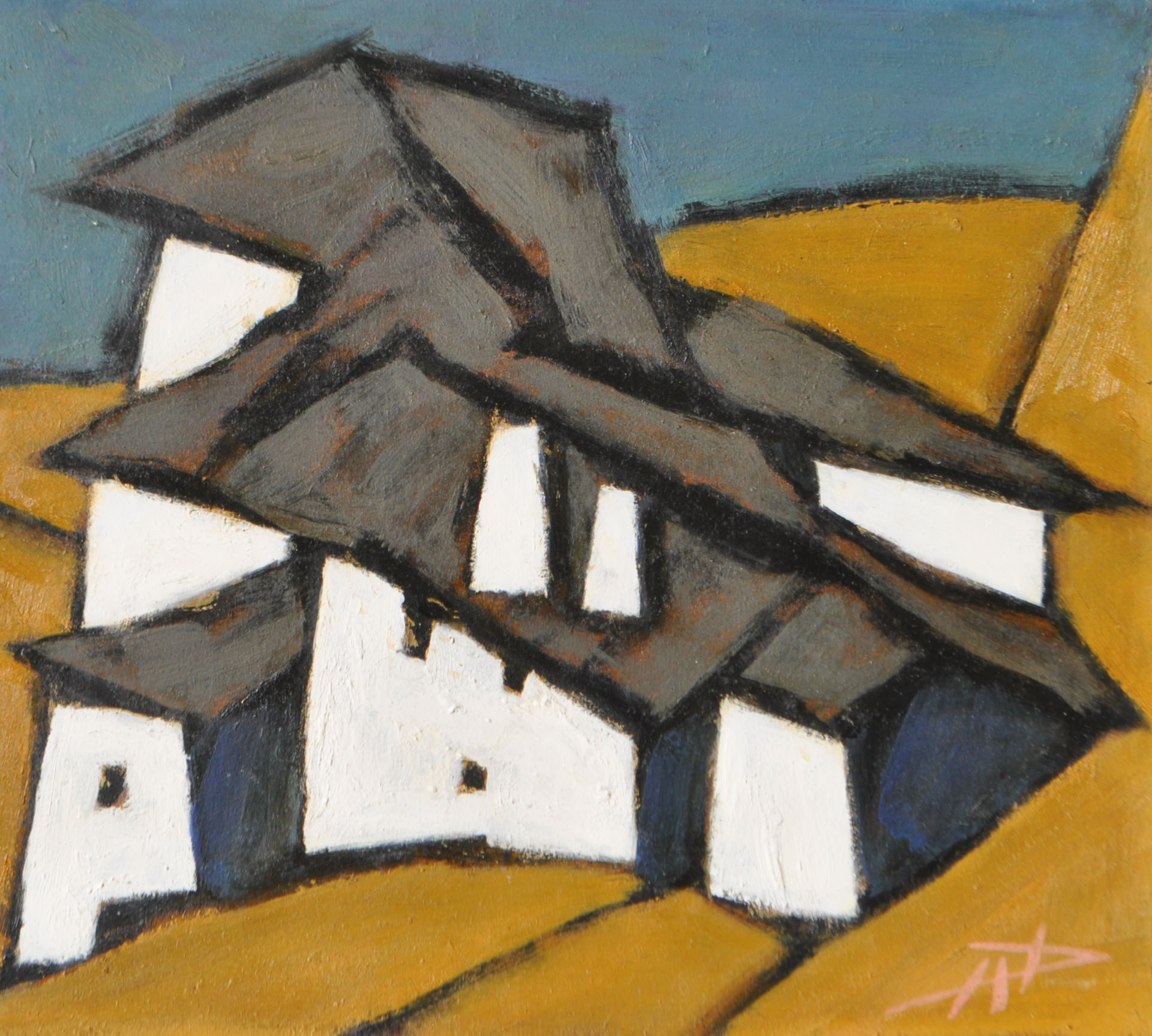 Herbert Danler (Fulpmes 1928 - Telfes im Stubaital 2011) Maso Stifthof, Monte Sole in Val Venosta, 2000;Olio su tavola, 27 x 30 cm, in cornice