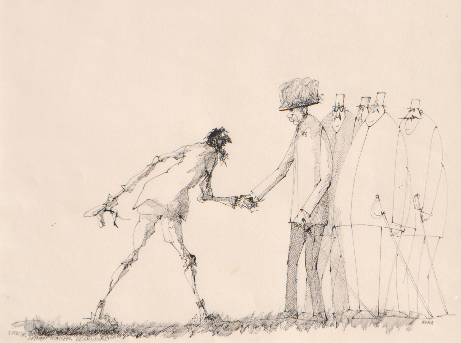 Paul Flora Glurns/Glorenza 1922 - Innsbruck 2003) Tirolese che saluta il suo imperatore;China, 23,5 x 31 cm (entro il passepartout), in cornice