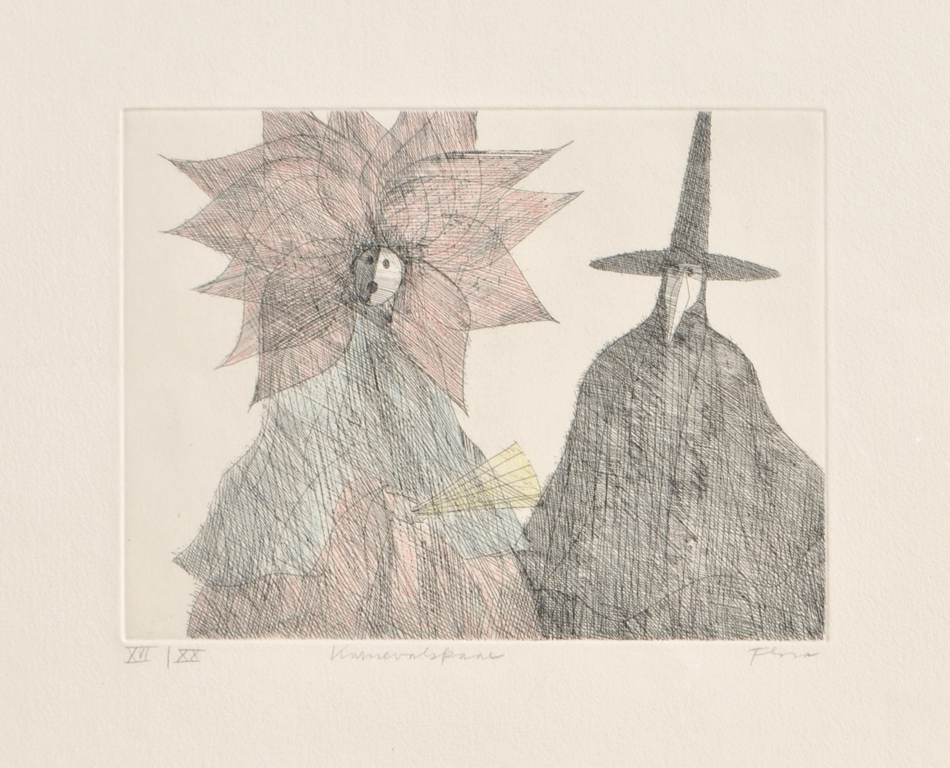 Paul Flora Glurns/Glorenza 1922 - Innsbruck 2003) Coppia in costumi di carnevale;Acquaforte colorata a mano, 17,7 x 23,3 cm (lastra),