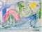 Vladislav Kavan (Baska 1924 - Bozen/Bolzano 2003) Cavalcata sul leone;Tecnica mista su carta su legno, 17 x 22,5 cm, in cornice