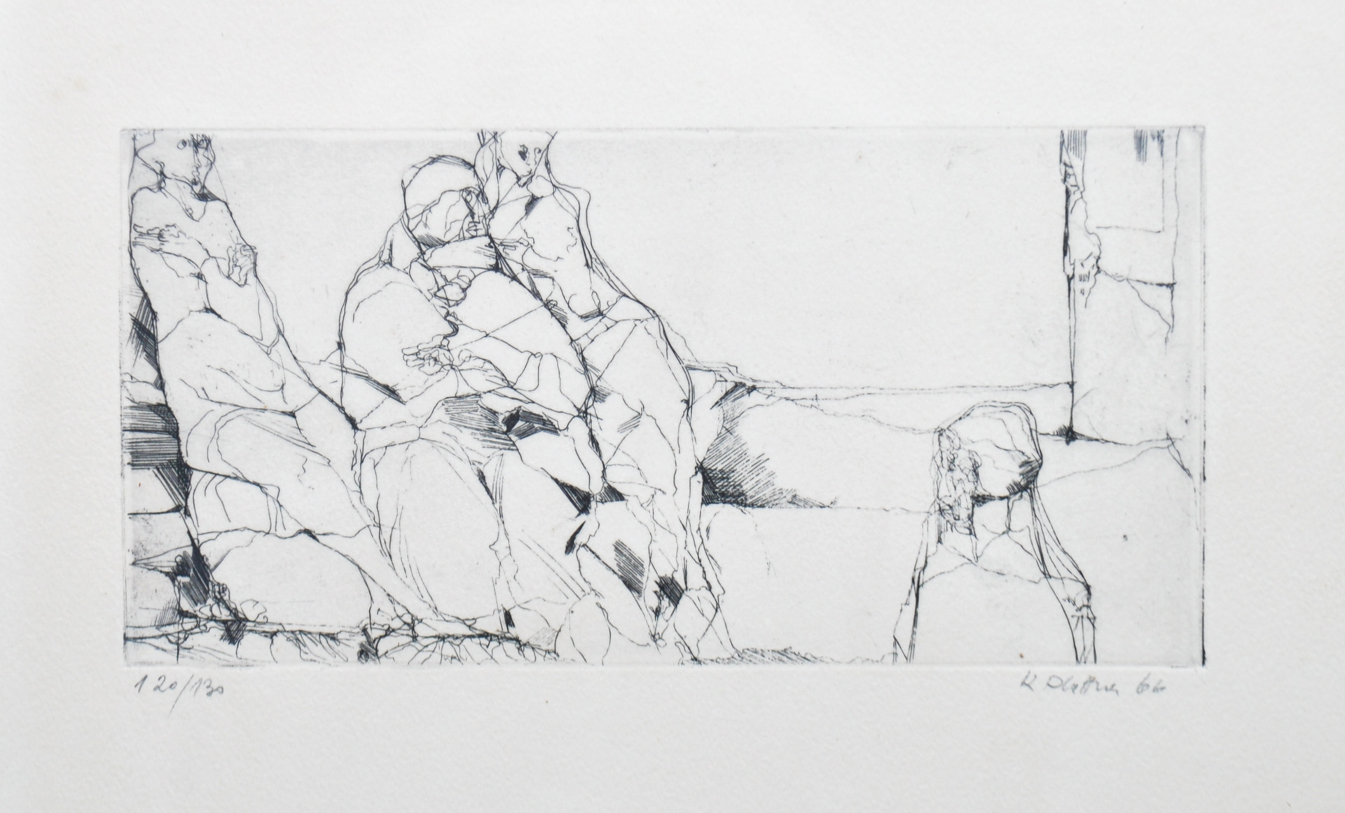 Karl Plattner (Mals/Malles 1919 - Mailand/Milano 1986) Incontro, 1966;Acquaforte, 9,8 x 19,8 cm (lastra), in cornice