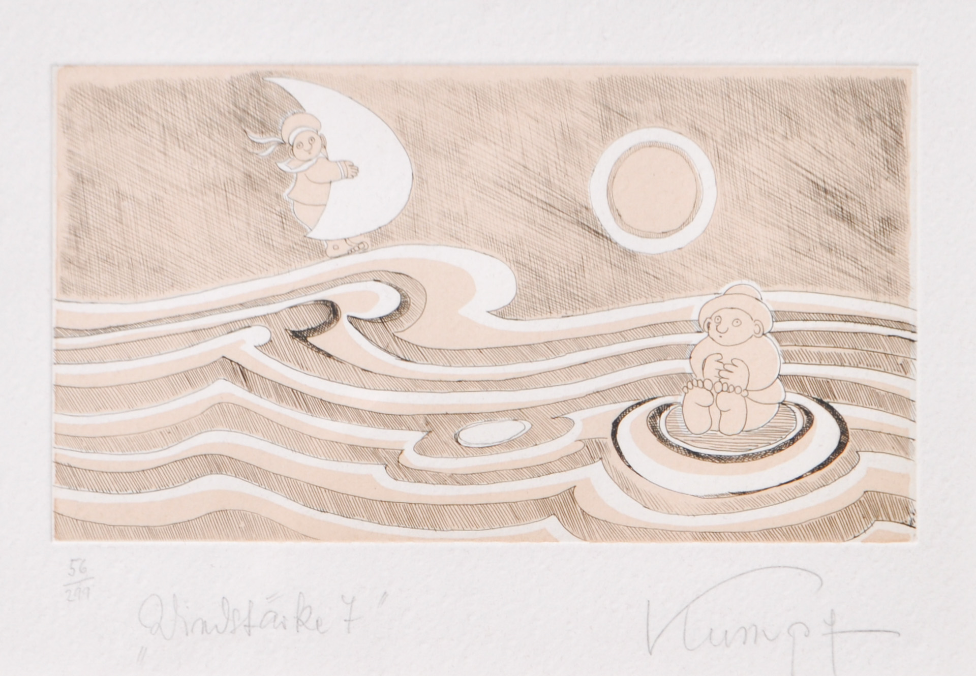 Gottfried Kumpf (Annaberg 1930 - Wien/Vienna 2022) Intensità del vento 7;Acquaforte a colori, 14,5 x 26,5 cm (lastra), in cornice