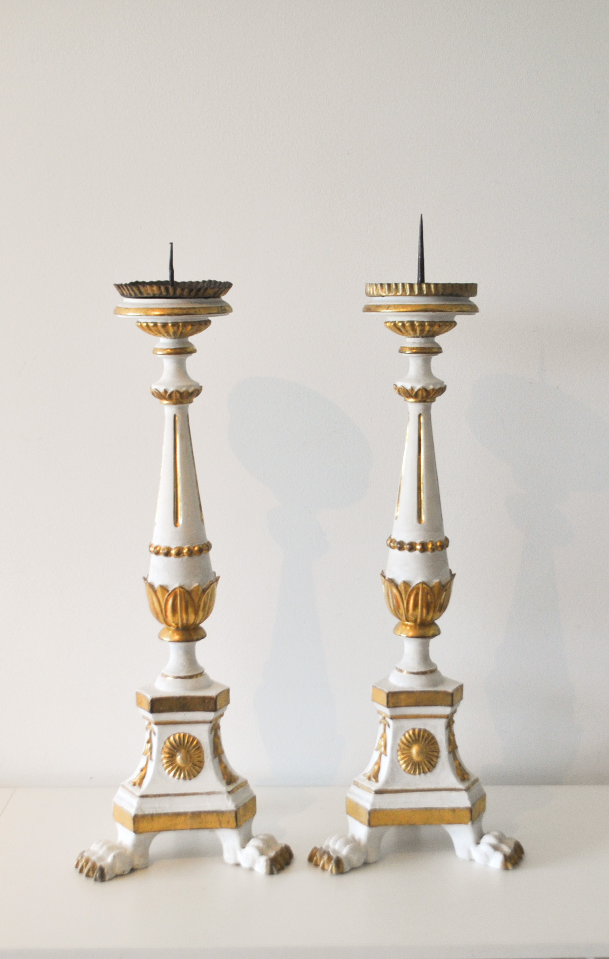 Anonym/anonimo Coppia di candelieri da altare, 1800 ca.;Legno dipinto,...