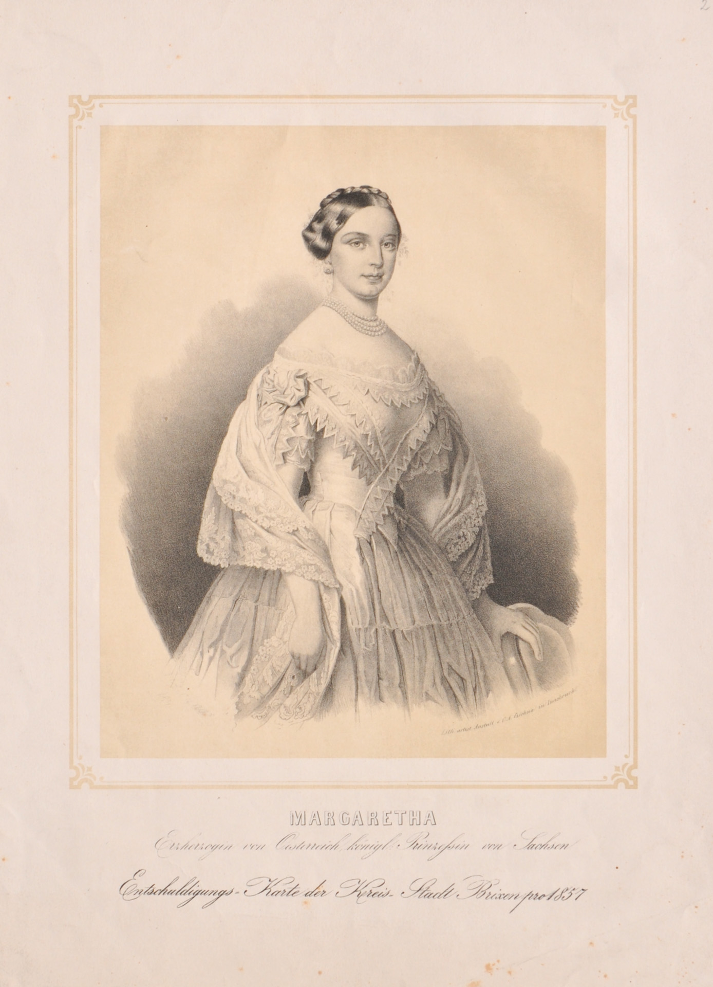 Anonym/anonimo Cartolina di scuse della città di Bressanone per il 1857;Margaretha Arciduchessa d'Austria Principessa di Sassonia -
