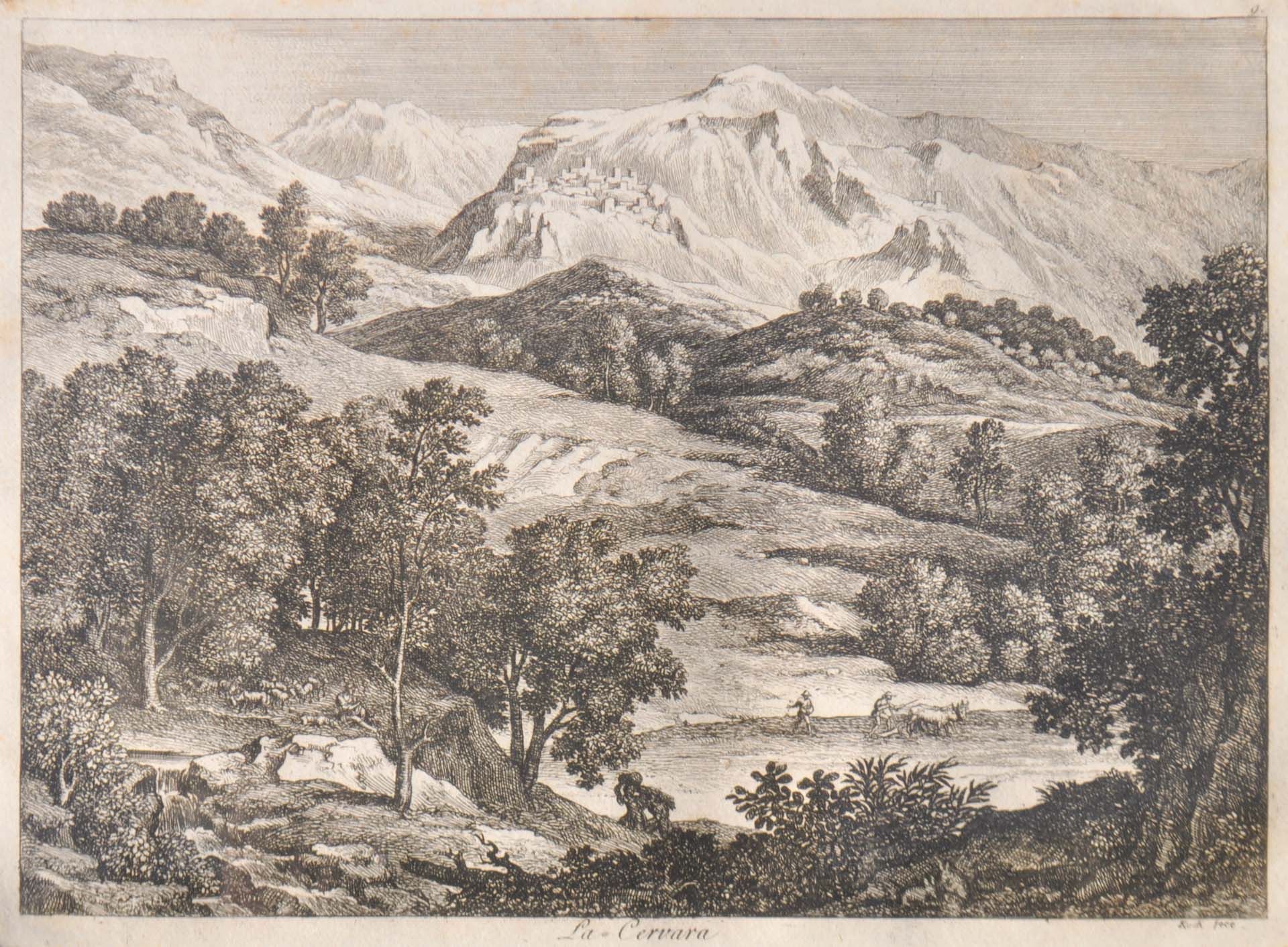 Joseph Anton Koch (Obergiblen, Tirol 1768 - Rom/Roma 1839) 3 acqueforti, 1810;SS. Giovanni e Paolo in Roma / La Cervara / Valle Garigliano vicino