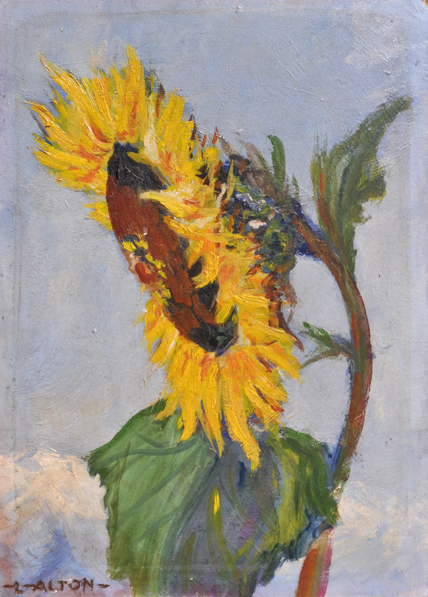 Lois Alton (Krumau 1894 - Innsbruck 1972) Girasole;Olio su cartone, 35 x 25 cm, in cornice