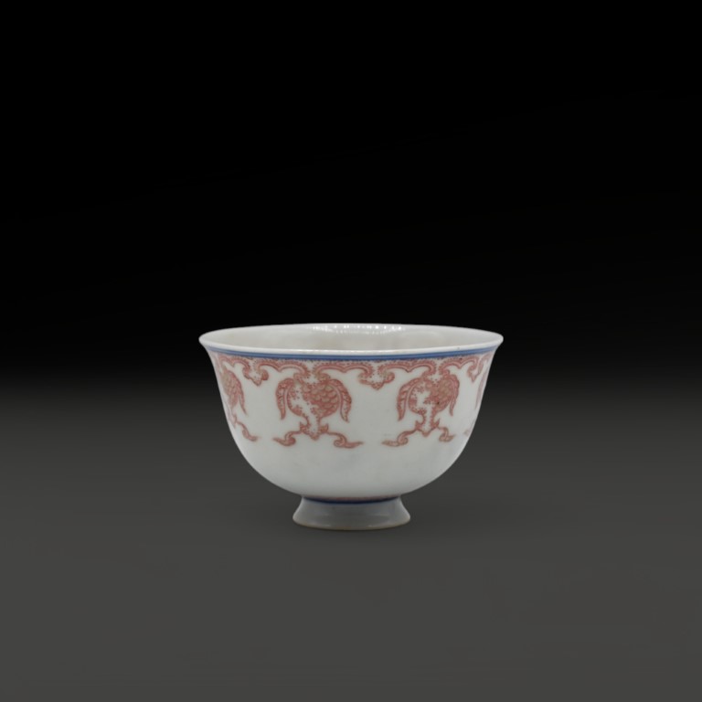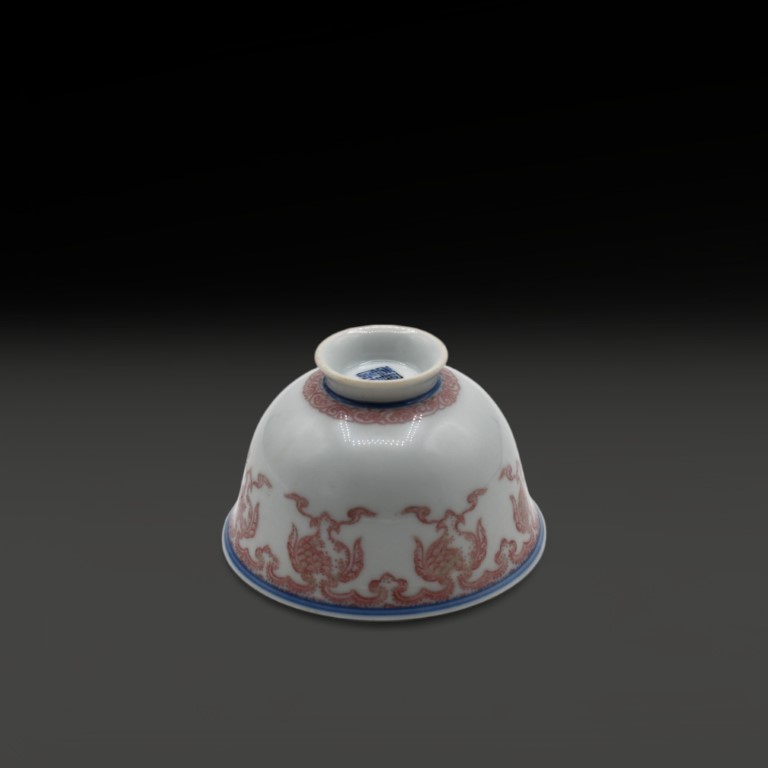 white porcelain body with underglaze copper red pomegranates decor. On the bottom Zuanshu hallmark.