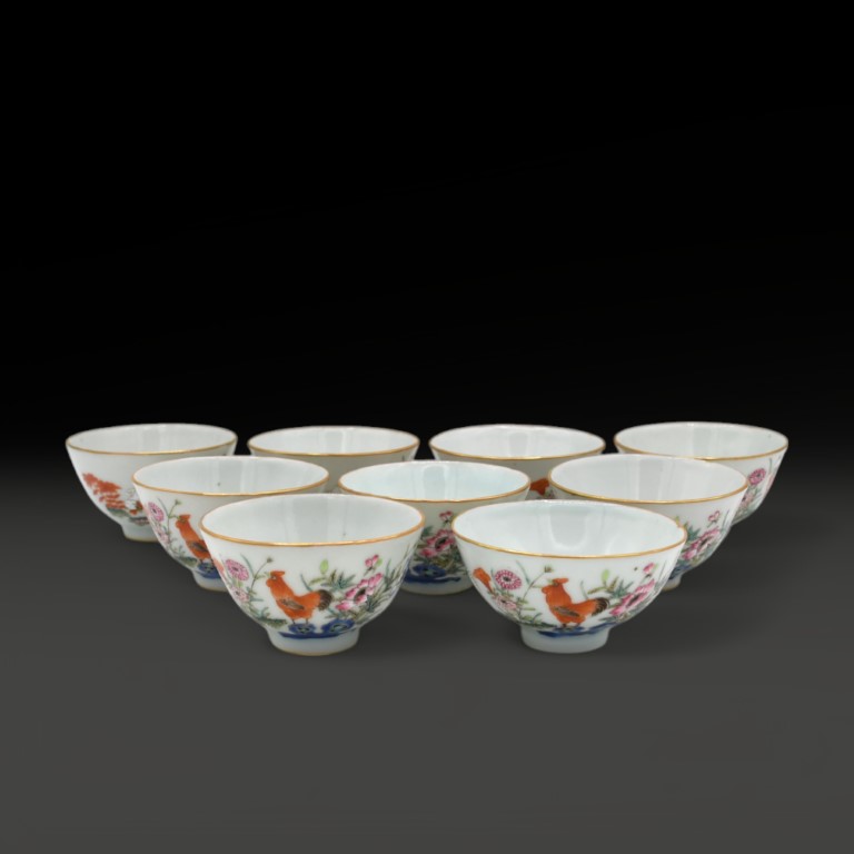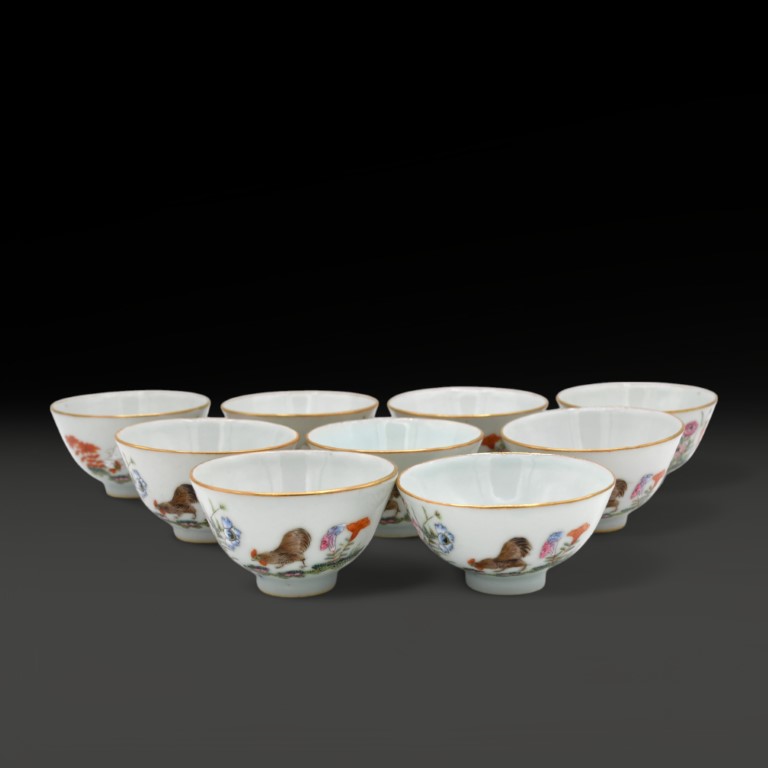 A Chinese set of 'chickens' cups
