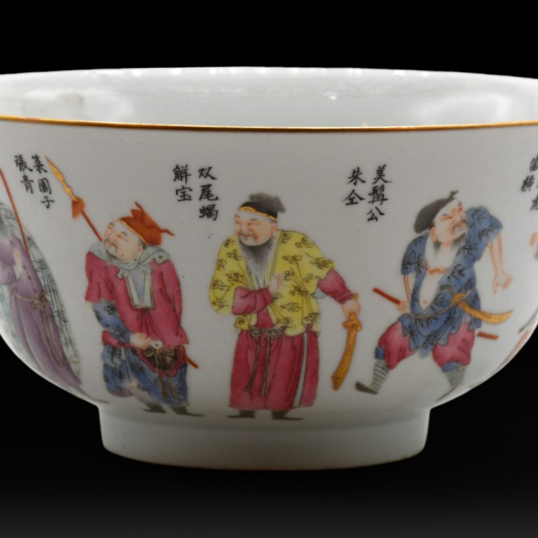 fine and large bowl decorated with court figures and inscriptions. On the bottom imperial six characters mark of Daoguang in Zuanshu script.