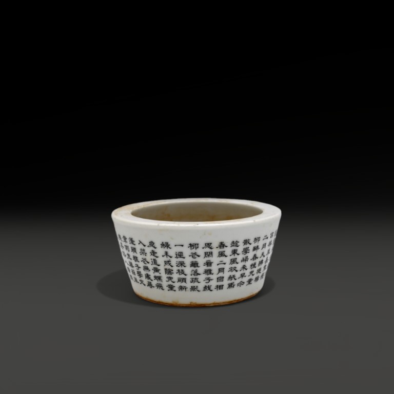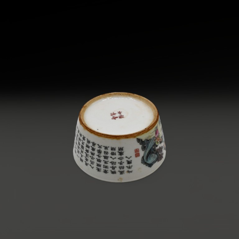 Famille Rose porcelain decorated with auspicious motif of kids playing in a garden and extensive inscription. On the bottom four characters iron red mark.