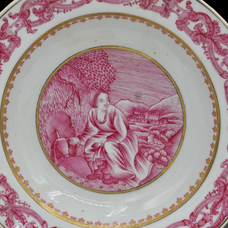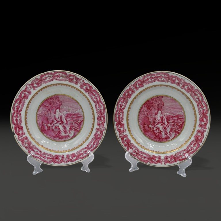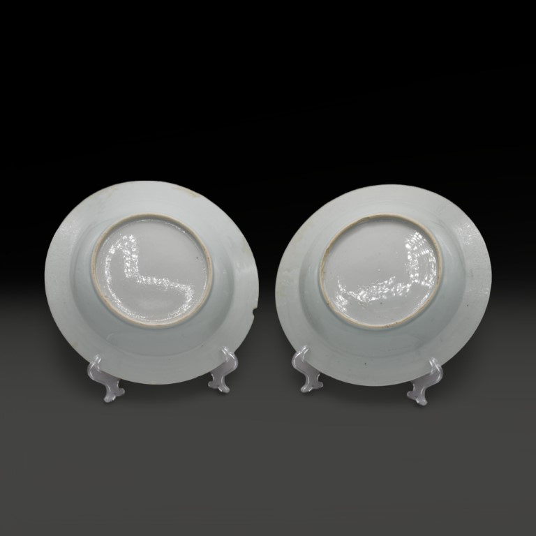A pair of grisaille Chinese export ware dishes