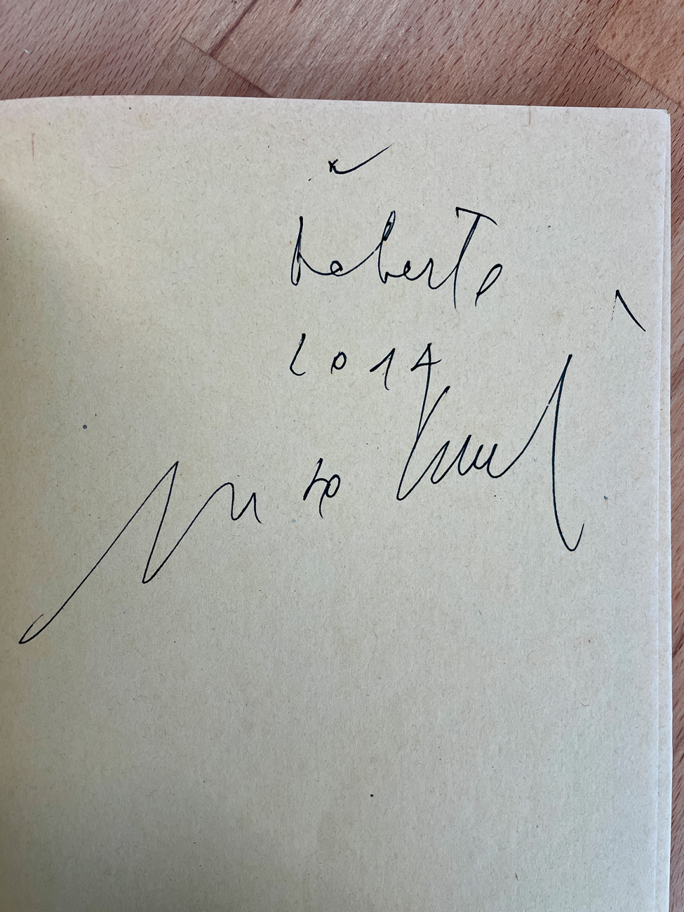 Reca firma e dedica datata (2014) dell'Artista all'interno