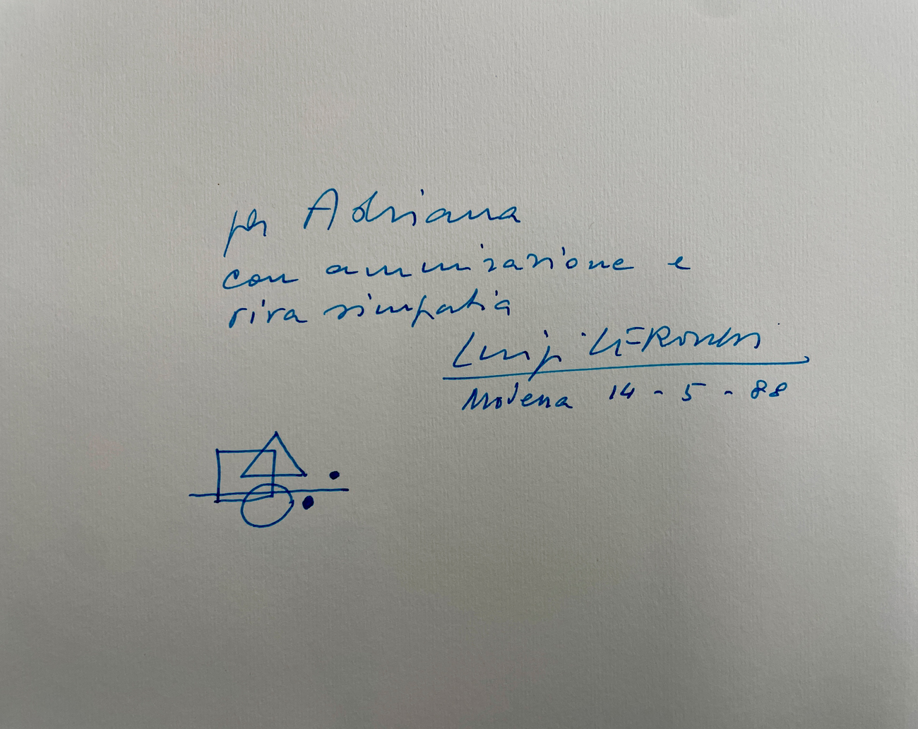 Reca firma, disegno e dedica ad personam datata 14.5.88 all'interno