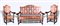 FINIMENTO DA SALOTTO IN NOCE - LIVING ROOM FURNITURE SET in stile seicentesco, composto da divanetto e coppia di poltrone rivestite in damasco rosso (3)
