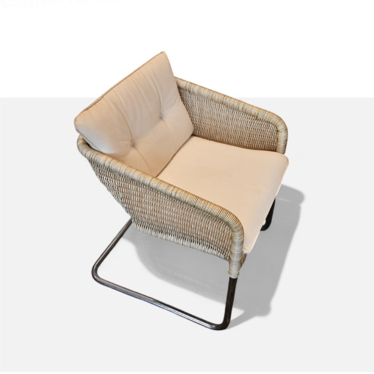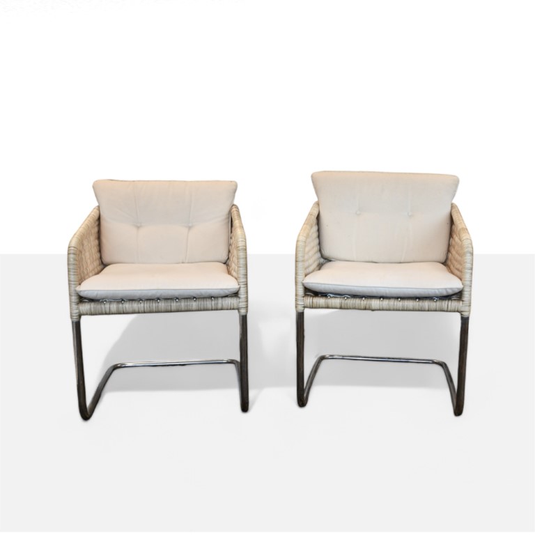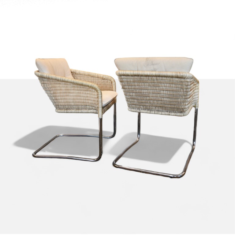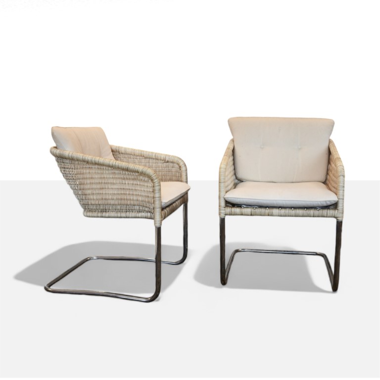 Quattro poltrone Mid-Century Modern, nello stile di, in vimini e acciaio