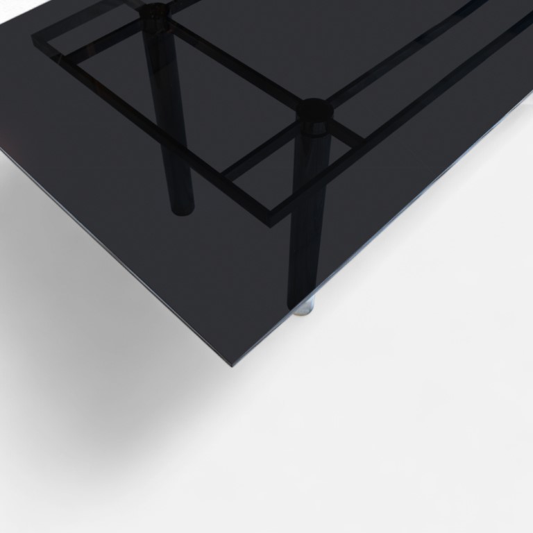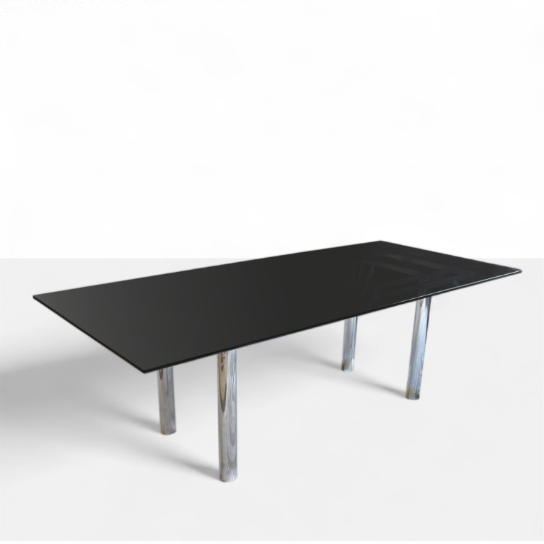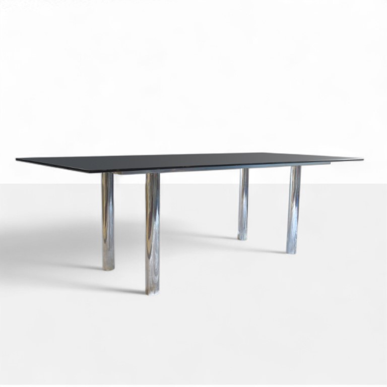 Tavolo da pranzo in acciaio e cristallo fumè. Produzione Gavina, Italia,