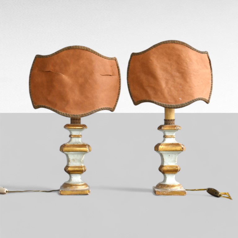 Coppia di perettoni in legno laccato bianco oro