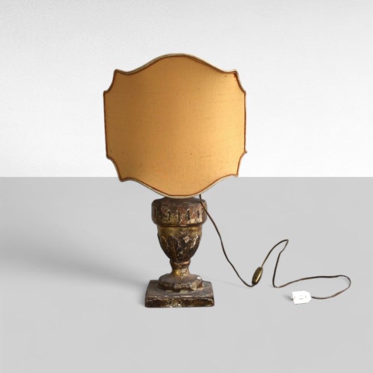 decorato con foglie di acanto, montato a lume e completo di paralume in stoffa
