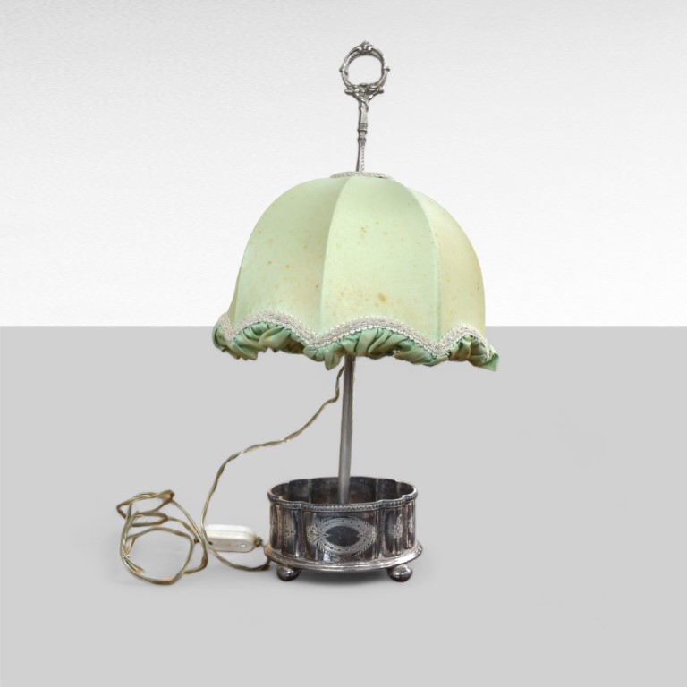 Lume da tavolo con base in metallo argentato